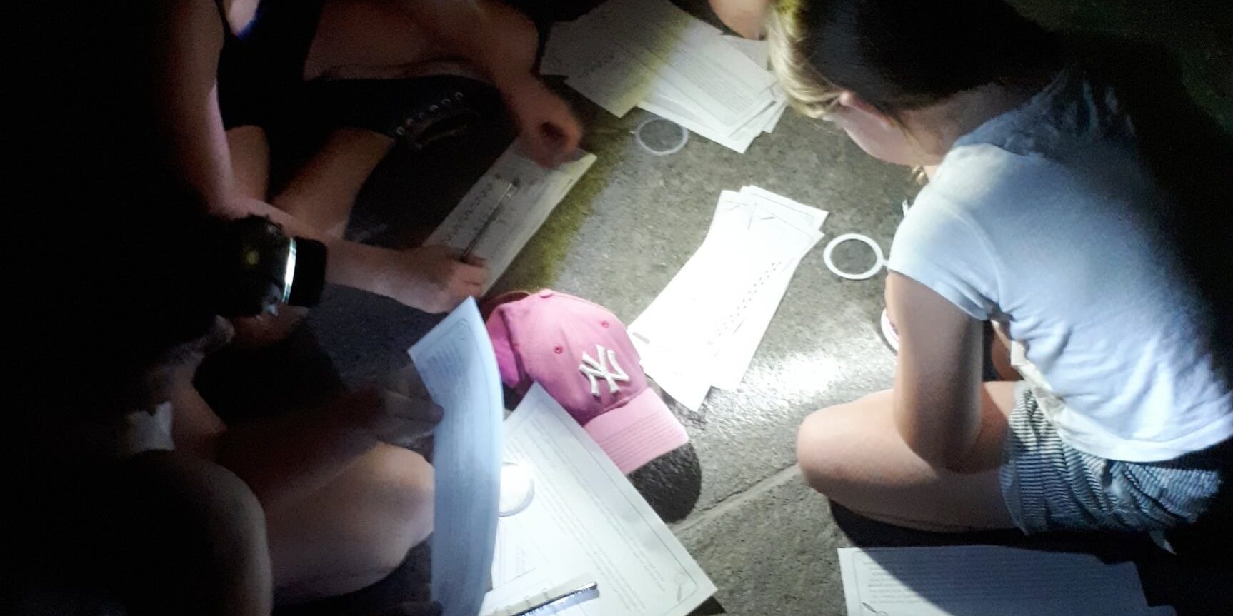 Zurückgekommen in der Schule wurde es danach richtig spannend: Bewaffnet mit einer Taschenlampe mussten die Kinder im stockdunklen Schultreppenhaus den Schulgeist suchen, der sich in einer Geschichte versteckt hatte. Verteilt in der ganzen Schule waren Hinweise an verschiedenen Stationen zu erraten, wo sich der Schulgeist versteckt haben könnte. Es hat allen Kindern viel Spaß gemacht. Am Ende bekam jedes Kind ein Knicklicht aus der Schatzkiste als Belohnung.