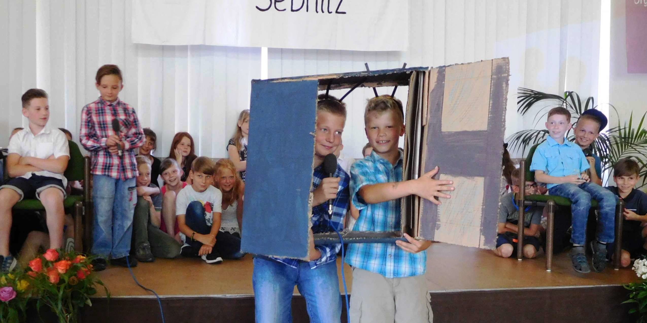 Der letzte Schultag unserer Viertklässler war Anlass dafür, sich noch einmal zum Abschied aus der Grundschule von der besten Seite zu präsentieren. Das taten die 41 Schülerinnen und Schüler in einem amüsanten, sehr unterhaltsamen Programm zur festlichen Verabschiedung in der Aula des Gymnasiums. Gemeinsam mit Frau Pellmann und Frau Büttner, unterstützt von der Musiklehrerin Frau Meißner, boten sie den Lehrerinnen und ihren Eltern ein buntes musikalisches Programm mit vielen Sketchen. Dafür danken wir allen Beteiligten.